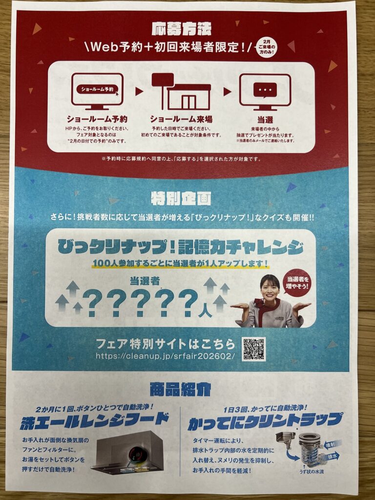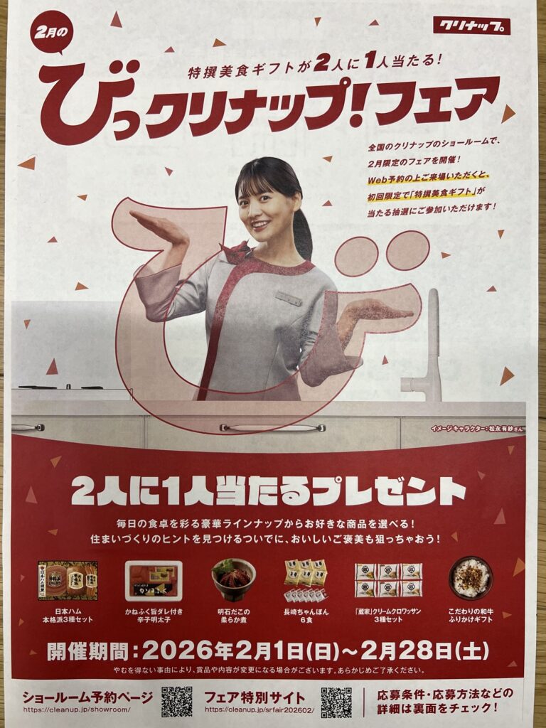 2月より、ショールームにweb予約の上ご来場いただくとプレゼントが当たる抽選にご参加いただけます‼︎