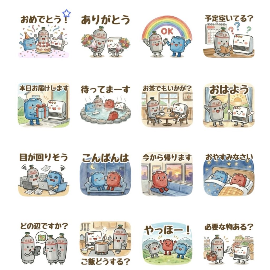 つくるちゃさんが、【まちの燃料屋】のLINEスタンプを作ってくださいました☺️